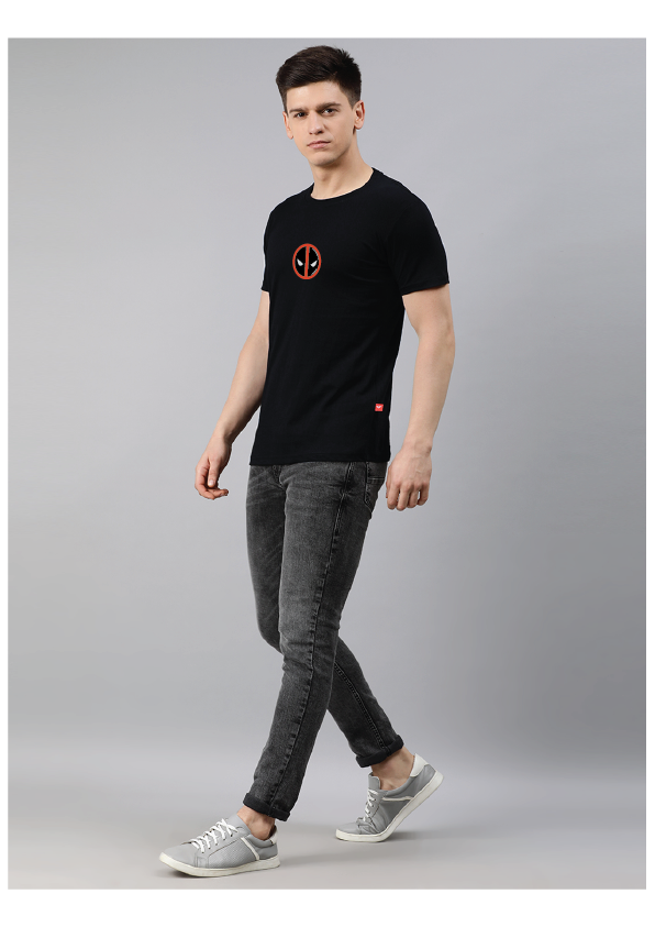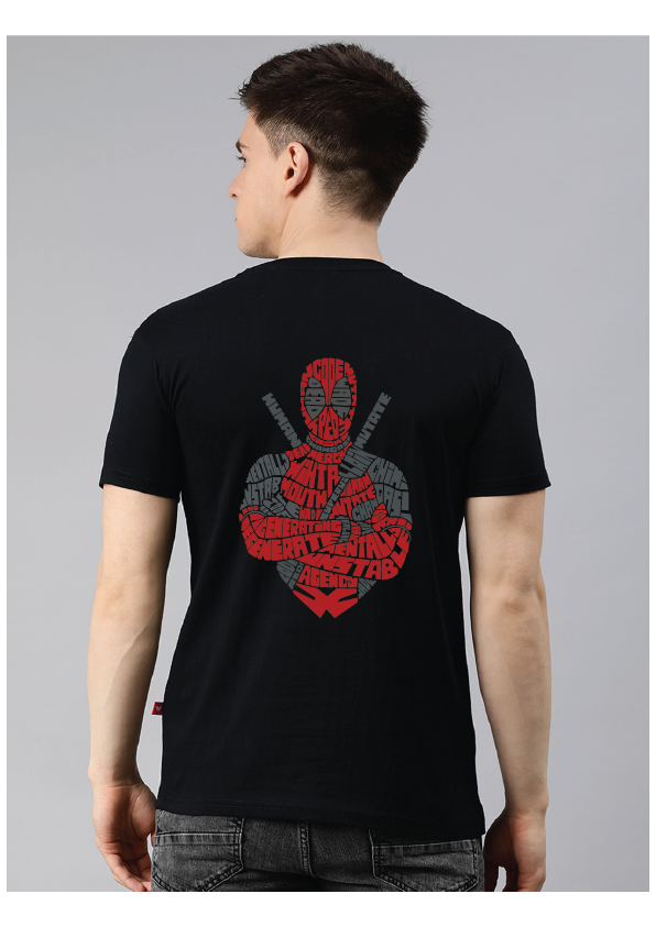 Regular Balck Superhero Printed T-shirt